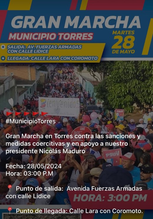 It is necessary to mention that the Chavista march in Barquisimeto was called for the parish of Juan de Villegas, which is the largest in Barquisimeto and the same place where the María Corina Machado rally was planned.
